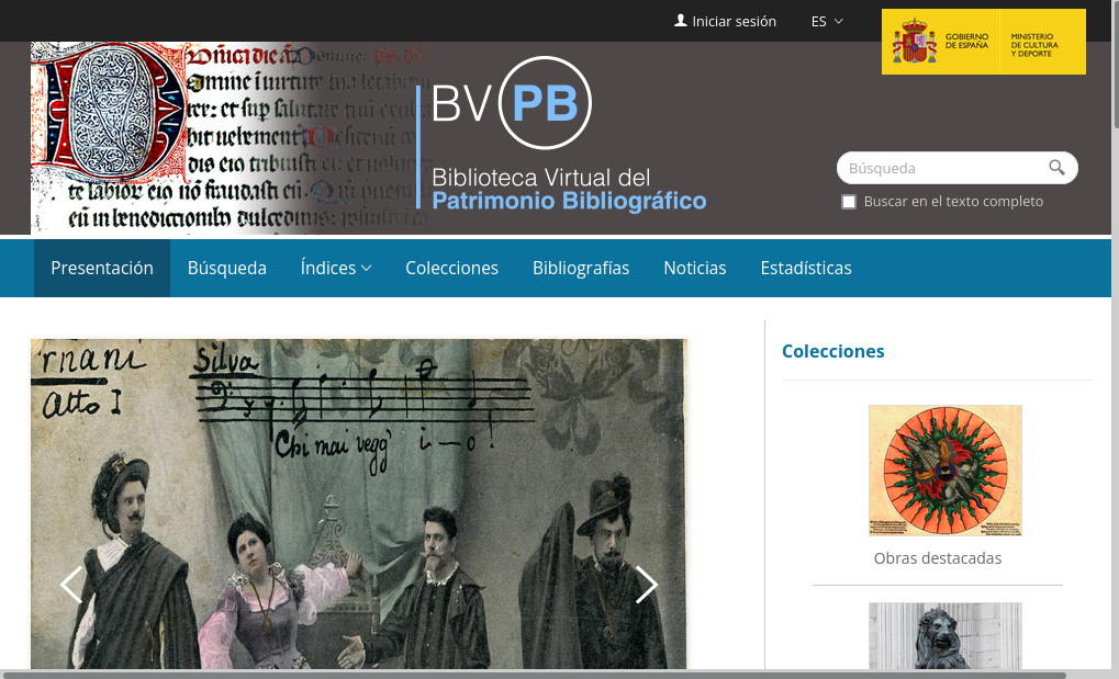 - Biblioteca Virtual del Patrimonio Bibliografico: https://bvpb.mcu.es/es/inicio/inicio.do