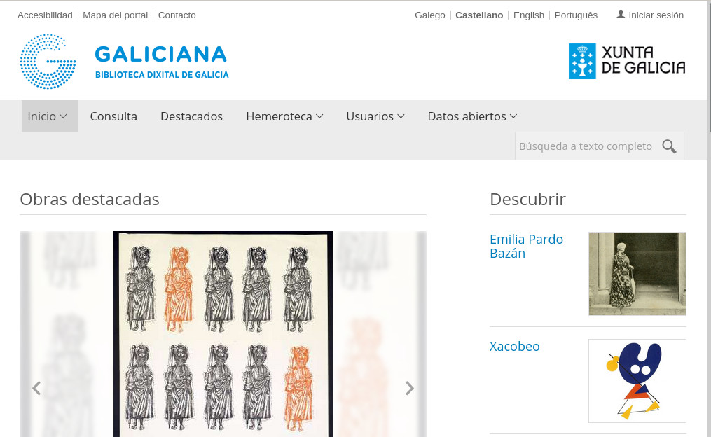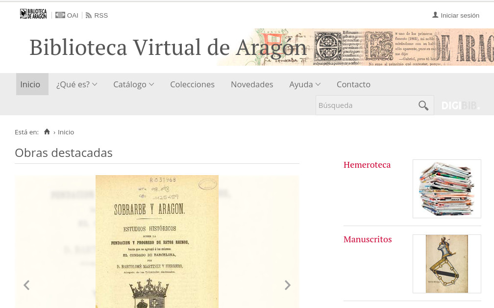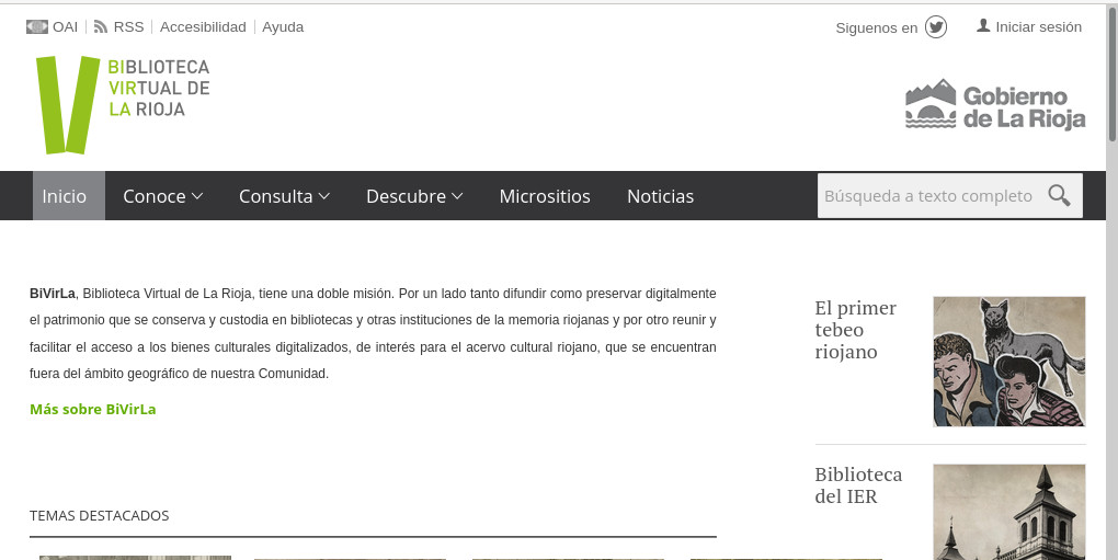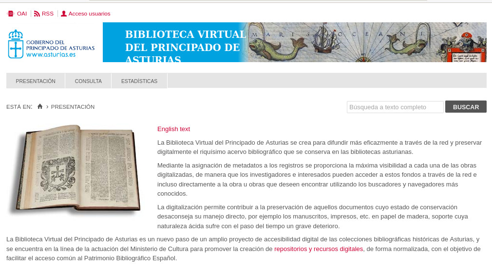 enlaza con otros dos repositorios digitales, Hispania Pro y Europeana. A